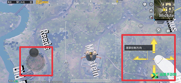 6、按住前进按钮可以加快跳伞的速度,右边屏幕滑动可以控制方向
