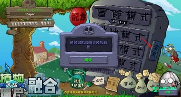 1、在植物大战僵尸融合版神秘模式主界面点击墓碑右侧的深渊按钮就可以进入深渊挑战关卡,需要通过冒险模式45关后才可以解锁