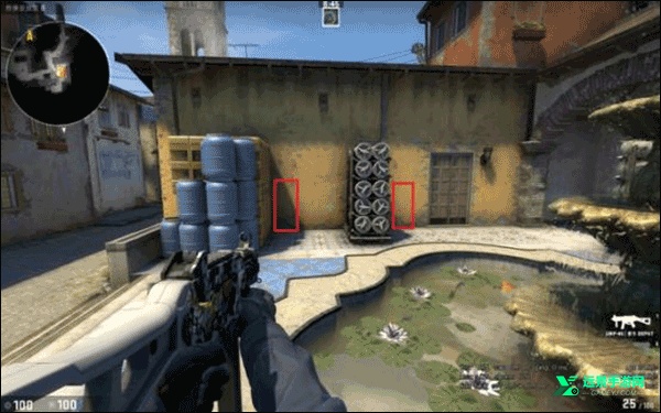 由于地图的改动,现在二楼出来的T往往会第一时间去查看大坑的缺口处,而这个站位刚好是T的视野盲区,如果T不完全走出来的话是根本不会发现这里有人的,而你可以提前半个身位开枪。