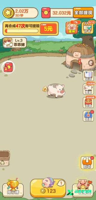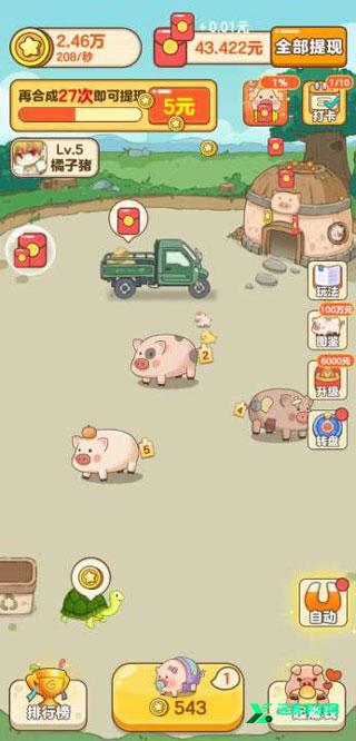 4.玩家进入游戏,扮演养猪场的主人。他们需要做的是不断给猪添加饲料,以获得经验和升级。