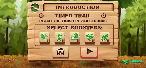 2、在【INTRODUCTION】界面,选择合适的助推器(如绿色图标),点击下方三角形按钮进入游戏。