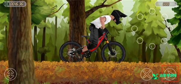 3、游戏中,点击右下角箭头按钮(红框内)控制角色骑行,穿越森林场景,完成关卡任务。