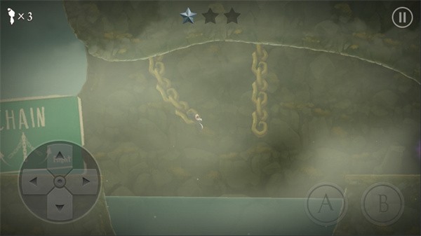2.进入场景后,通过屏幕左下角的虚拟方向键控制角色移动,跨越如链条区域等障碍