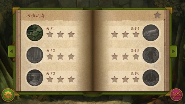 1.在游戏关卡选择界面,点击“污浊之森”下的关卡1,进入游戏场景