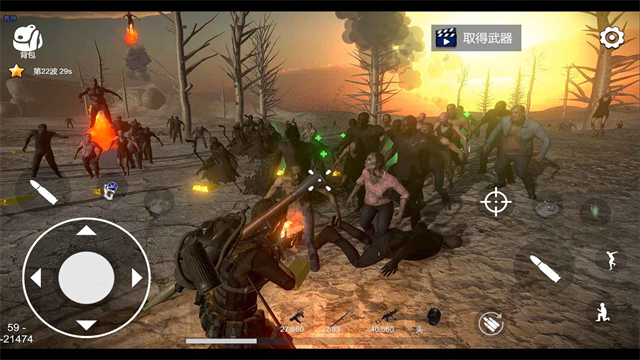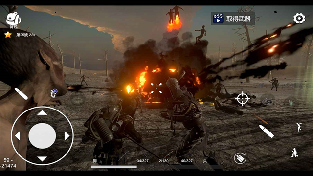 4、操作便捷,左边罗盘负责角色移动和射击,右边有瞄准、换弹等操作按钮。