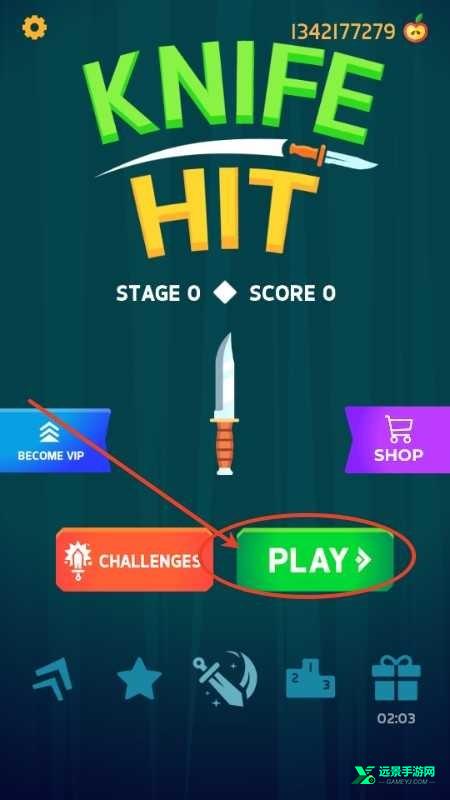 1、首先我们进入飞刀打击游戏中,点击play开始游戏;