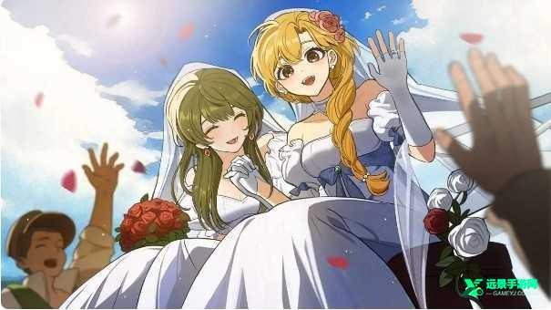与格温尼丝结婚。17%成就达成率,是最高的女角色伴侣结局。最美丽的外貌搭配最高贵的身份,谁看不迷糊怪不得迎娶公主是所有骑士的目标。公主大人开始感觉高高在上处处都透露王室的尊贵神圣,但随着相处渐渐发现了她的和蔼善良,平易近人。在她的领导下,火山国走向繁荣与稳定,通过自己的勇气与智慧,深得人民爱戴与尊重,被誉为火山国历史上最伟大的女王。