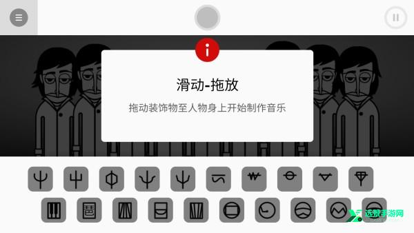 1、打开节奏盒子XDbox模组手机版,拖拽底下的符号到小人物们身上,搭配奇妙的节奏音乐。