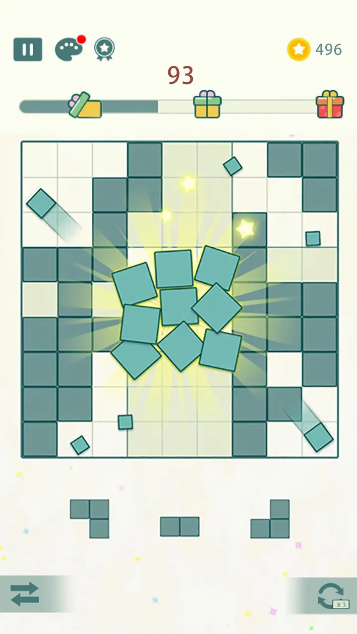 2、九宫方块需要玩家将方块组成一行,一列,或者一个九宫格来进行消除,从而得分。