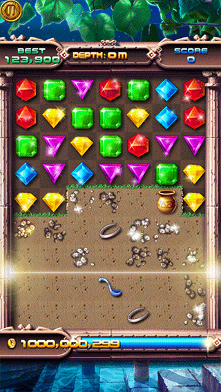3.玩法与三消类似,通过三个相同的宝石来进行消除