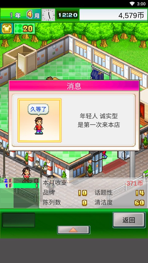 1、玩家在游戏中将成为一位店铺经营者,合理的规划管理店铺。
