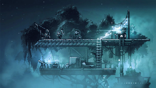 3、对像素世界进行阴冷色调、低沉音效与留白场景处理