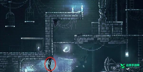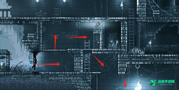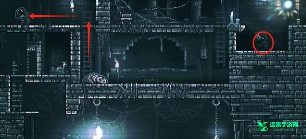 12.爬上吊灯右边的平台,柱子会断裂,把之前推断的柱子推过来修复平台,从平台往左跳过去,获得钥匙。