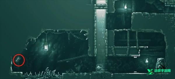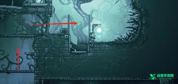 4.往右走,砍断挡路的藤蔓,继续往右,进入城堡后往右下的火盆方向走下去。