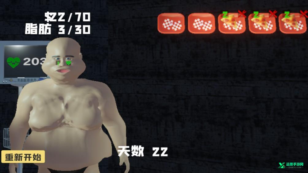 2、不同的食物会有不同的效果,比如披萨会增加角色2点脂肪,并会导致暴食