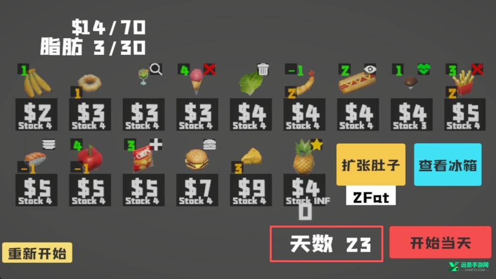 4、随着天数逐渐减少,角色越吃越胖,你所赚到的金币就会越来越多