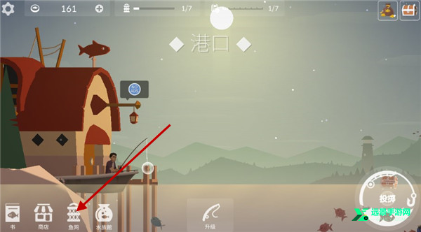 1、钓上来的鱼将会存放在鱼网中,我们点击渔网。