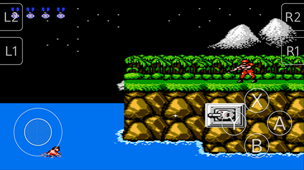2、左下角控制角色移动,右侧“X”“Y”是开火“A”“B”跳跃,用来攻击和躲避子弹,可以灵活使用。
