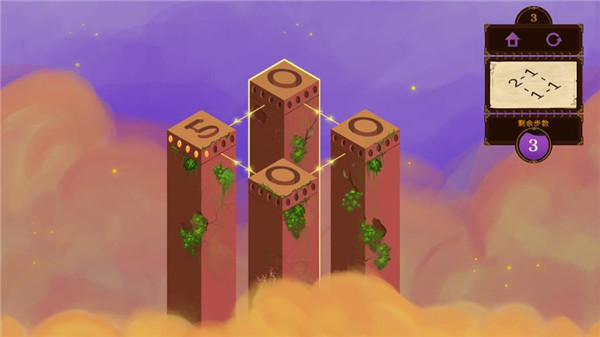 2.进入解谜关卡后,按照画面中箭头指示及上方提示框的要求,如“6-1-0-1”,点击对应数字“1”的柱子,完成当前解谜步骤