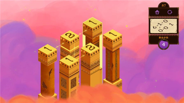 3.在后续解谜关卡中,继续参照提示框(如“2-1-7-7”),点击对应柱子(如数字“7”的柱子),在限定步数内完成解谜,推进游戏进程