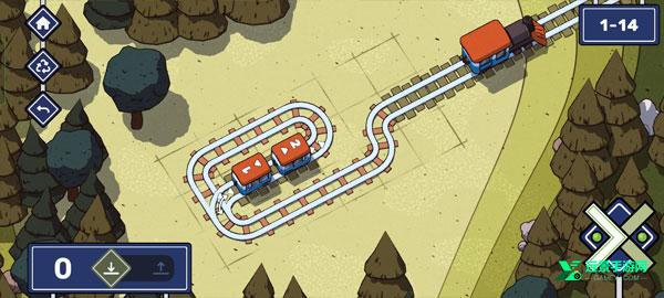 攻略游戏的玩法非常简单,就是根据火车运行的方向,开始铺设轨道,对于没有用的轨道可以进行删除,铺好轨道之后让其通行即可。如果碰到两个火车头,则先让数字小的排在前面才能通关,下面是1-14A关卡的通关轨道铺设图。