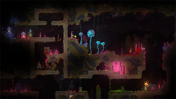 1、玩家扮演一位无名巫师,深入程序生成的地下世界进行探险。玩法围绕“魔法”展开。