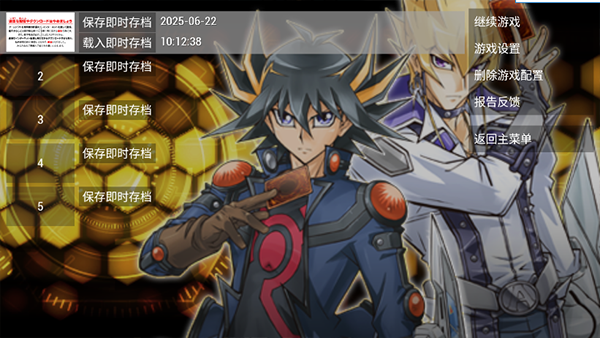 3、进入游戏内按返回键后选择载入存档即可获得解锁所有关卡,全卡牌全成就,游戏王最强牌组。