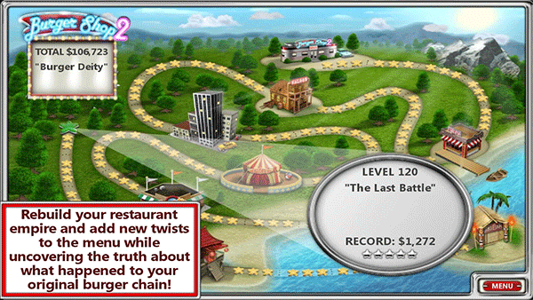 1.故事模式:重建你的餐厅帝国,同时解开是谁摧毁了你原本汉堡连锁店的谜团
