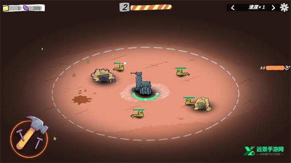2、当怪物出现时,炮塔会自动攻击,你需要消灭入侵的怪物,保卫前哨基地;