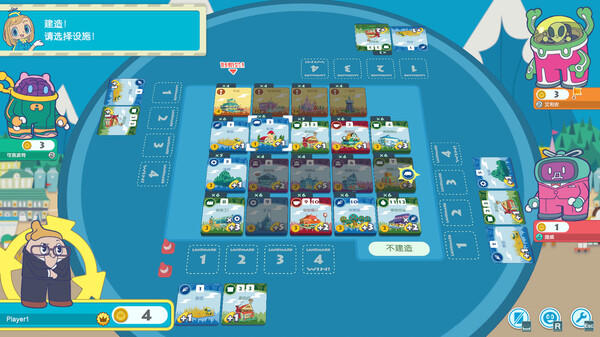 低对比度温馨配色,圆滚滚的Q版角色与建筑,长时间游玩不伤眼。数字版自动计算收益、高亮可购买项,消除实体桌游算错账的摩擦。