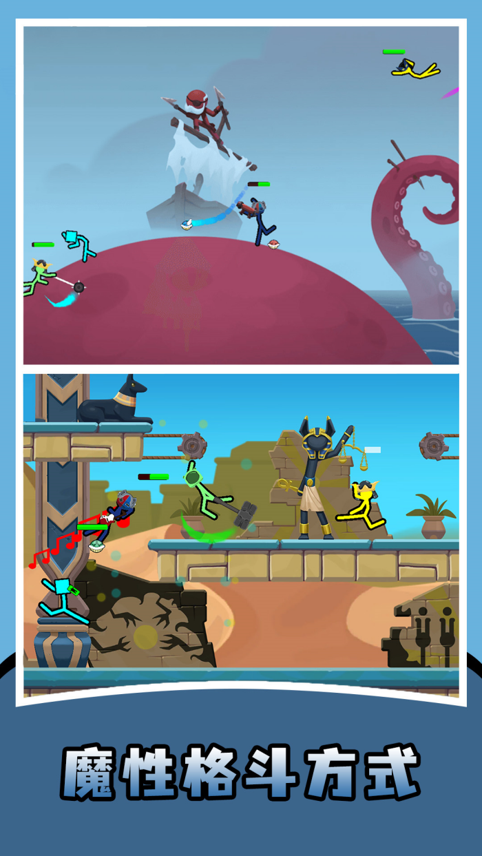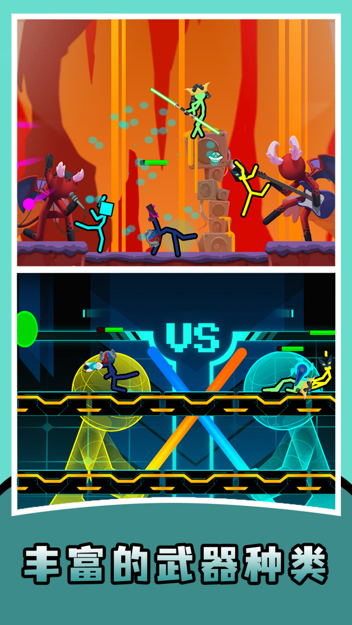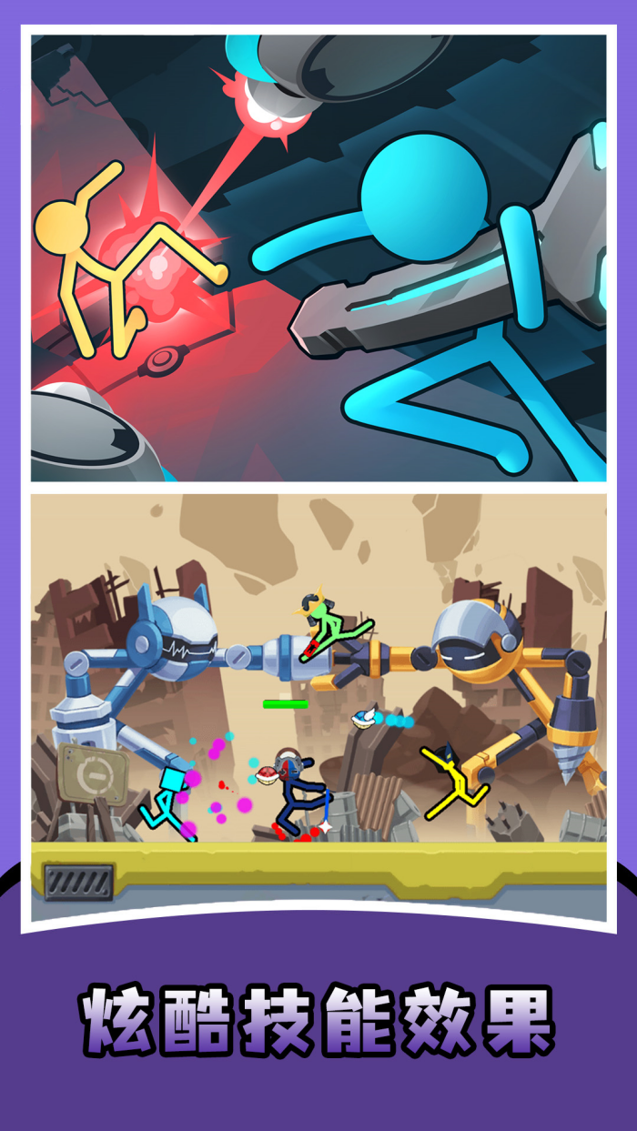 火柴人至尊决斗手机版是一款以火柴人为主角的动作对战游戏,游戏利用火柴人作为主角自然也采用了极简的游戏画面,因此游戏的打斗也很有艺术感,就像是剪影在互打一般。火柴人至尊决斗手机版会提供众多的战斗场景和游戏模式供玩家进行选择,部分模式中武器与场景元素会随机刷新。游戏的操作以移动、跳跃、攻击等动作为主,上手十分简单。