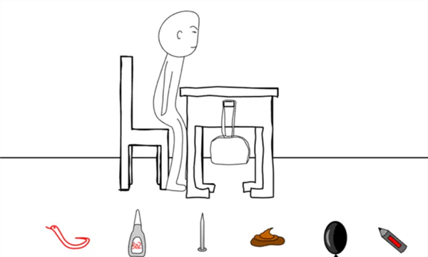 然后小人会坐下椅子被你的整蛊道具捉弄,漏出各种搞笑的表情