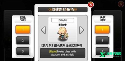 3、开始游戏有四个职业可以选择:狂战、射手、法师、圣骑,职业不但各有特点,而且每个职业都有技能树,玩法是比较多样的。